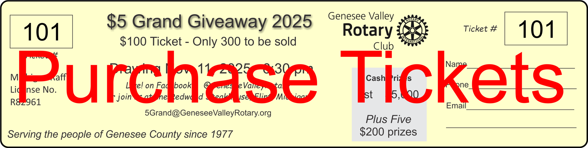 Only 300 tickets will be sold and 100% of the profits will be used for Rotary and associated nonprofit community organizations. Ticket buyers and their guests are welcome to join us live at the Redwood, doors open at 6:00 pm, order drinks and food from the menu. You do not need to be present to win. Online ticket buyers will be emailed their number.